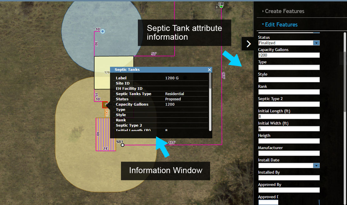 1. For this example select a Septic Tank and open the corresponding Form by selecting ‘Show Form’ in the Information Window.