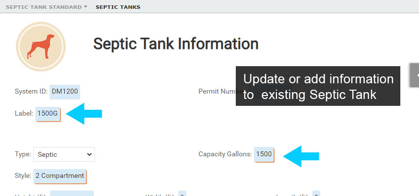 For any unmapped Septic Tank or Drainfield, you have to use a parent Form (System Information or Onsite Permit) to access and edit information about each component.